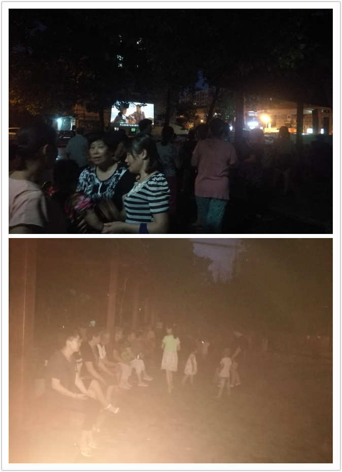 正值暑假期间,社区很多孩子放假在家由老人照看,为了丰富社区小朋友假期的精神文化生活,康居里社区组织社区五老讲师团成员开展“清凉一夏、一起看电影”活动,五老讲师团张老师联系了电影公司于2017年7月3日晚上七点半在康居里小区广场为社区居民和小朋友播放电影,居民们纷纷带着孩子,三五成群结伴前来观看。孩子们一边观看电影、一边做游戏,体验童真的快乐和伙伴玩耍的乐趣。电影进社区,进一步推动了社区文化建设,也让居民们的业余文化生活丰富起来。