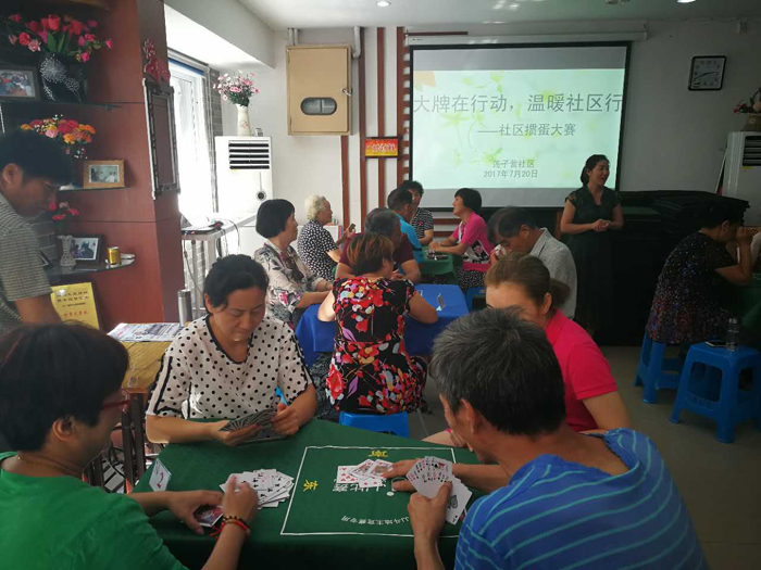 掼蛋比赛是一项从民间娱乐向竞技体育发展的活动,既丰富了居民们的生活,又使居民们体验到对抗、合作的快乐,还增进了社区棋牌爱好者之间的交流。