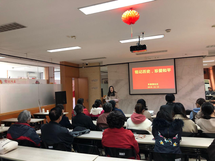 12月13日是第六个国家公祭日,为铭记历史,进一步增强居民的爱国情感,苜蓿园社区开展“铭记历史,珍爱和平”主题纪念活动,激发广大居民的爱国热情。