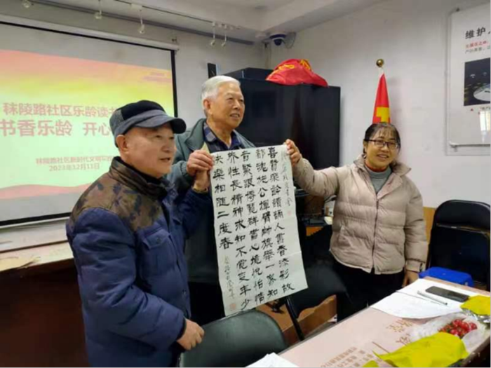 12月22日,朝天宫街道陵秣路社区“乐龄读书会”的书友们,以阅读为媒介,玩起了“乐龄式”的跨年活动。
