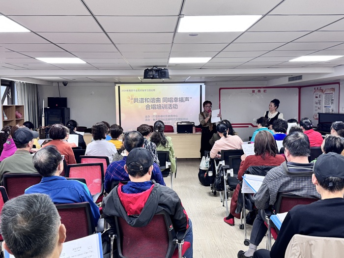 2024年全民终身学习周,为进一步丰富辖区老年人的精神文化生活,弘扬健康文明的生活方式,给热爱音乐、唱歌的辖区老年居民构建一个学习和交流的机会。10月21日,春天家园社区举办声乐合唱培训班,活动得到了社区老年居民的热情参与,培训班共有30余人参加。
