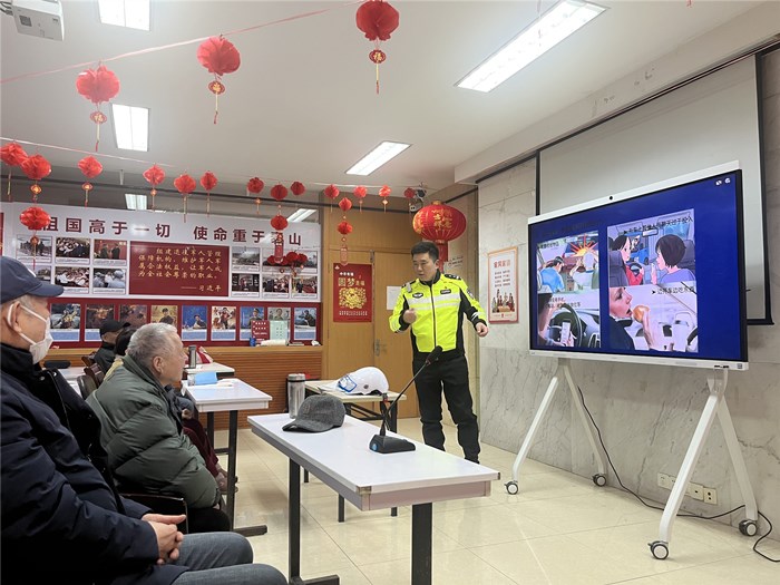 活动一开始,交警首先通过播放交通安全宣传视频,向老年人们展示了遵守交通规则的重要性。视频中,一幕幕因不遵守交通规则而引发的交通事故触目惊心,让老年人们深刻认识到安全出行的重要性。随后,交警结合老年人的出行特点,重点讲解了过马路时要走斑马线、骑电动车时要佩戴头盔、乘坐大巴车时要系好安全带等交通安全常识。