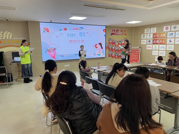 课程首课以《专注力大挑战》趣味游戏开场,家长与孩子通过协作任务迅速融入课程,在欢声笑语中开启好书共读第一课。全体学员深情朗诵诗歌《她走在美丽的光彩里》,感受英国浪漫主义诗人拜伦笔下对美丽优雅女性的赞美,让我们学会赞美身边不辞辛劳、默默付出的巾帼力量们!在“朗读比拼”环节中,孩子们用童声演绎文学经典,展现语言艺术魅力。最后,老师教大家利用身边的材料制作色彩缤纷的绣球花,送给一直照顾自己的妈妈、奶奶、外婆们,向她们道一声:谢谢!您辛苦了!