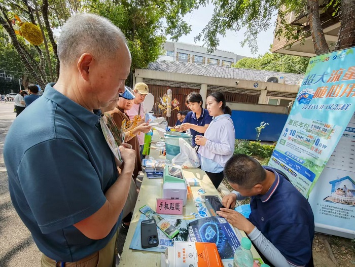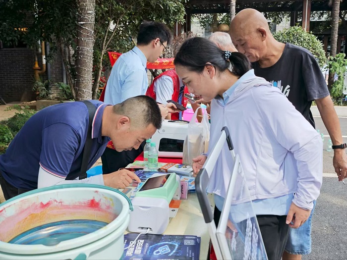 生活便民区同样热闹非凡。手机贴膜服务深受居民欢迎,志愿者们自带多种型号的手机膜,仔细为居民清洁屏幕、精准对位贴膜,手法娴熟利落。“家里的旧手机膜早就刮花了,一直没来得及换,今天社区免费贴膜,真是太贴心了!”刚贴好膜的王阿姨拿着手机,脸上满是笑容。志愿者们还在现场解答居民的手机使用难题,教老年人如何设置字体大小、使用微信视频通话等,帮助他们跨越“数字鸿沟”。