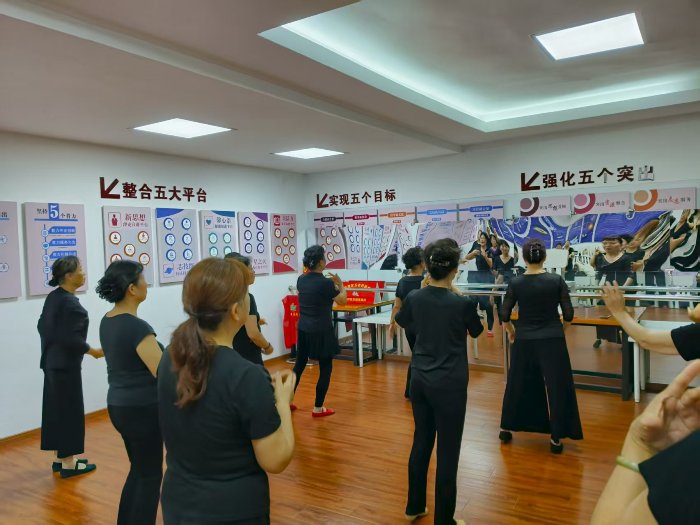 为丰富辖区内居民的业余文化生活,提高社区居民的幸福感、满意度,2025年9月19日下午,三条巷社区舞蹈队在五老村街道新时代文明实践所开展舞蹈演练活动。
