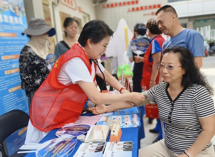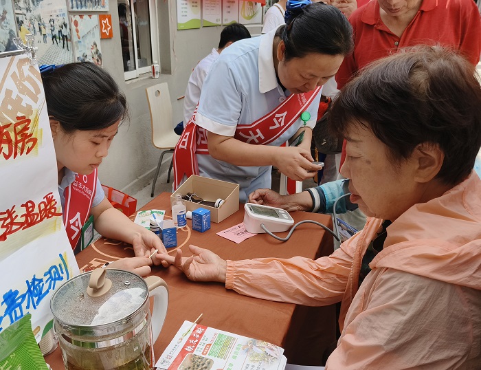 活动当天,现场人头攒动,气氛热烈。政策咨询区,社区工作人员耐心细致地为居民解答各类民生政策疑问;健康服务区尤为忙碌,蓝旗社区卫生服务中心、雅康口腔和益丰大药房(御道街店)的专业人员为居民提供免费的血压测量、血糖检测和口腔健康检查等服务,并给予个性化的健康指导,吸引了大量中老年朋友排队参与。