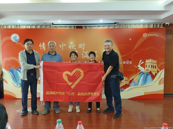 中秋不仅寓意团圆,更承载着奉献与关爱的传统。活动现场,蓝旗新村社区“心侨助残服务队”正式成立。该服务队由社区归侨、侨眷自发组建,旨在服务辖区残疾人群,参与社区共建。大光路街道统战委员戴劲松、侨联主席陈泽共同为服务队授旗,标志着社区助残工作注入新的“侨力量”。