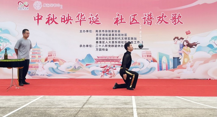 本次汇演的“惊喜彩蛋”,当属南京市杂技家协会带来的专业表演。古彩戏法蔡敏功老师的魔术变幻莫测,引得观众连连惊叹;杂技演员陈杰老师的《刀锋上的艺术》更是惊险刺激,每一个动作都扣人心弦,他们的表演让居民在家门口就享受到了高水平的艺术盛宴。