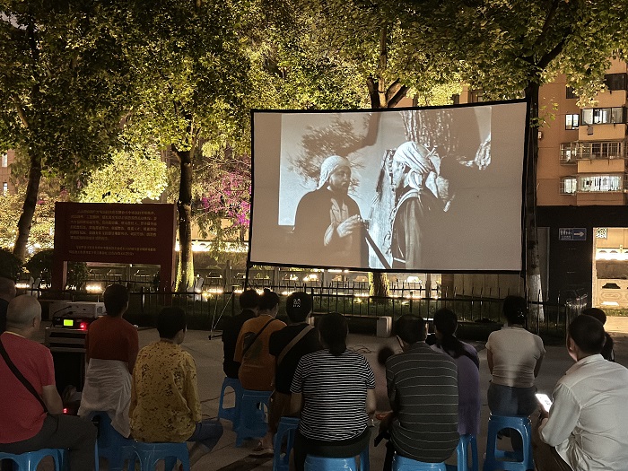10月11日晚,尚书巷社区关工委、新时代文明实践站、社教办组织居民在劳模工匠园齐聚一堂,共赏红色经典《地道战》,用光影致敬历史。