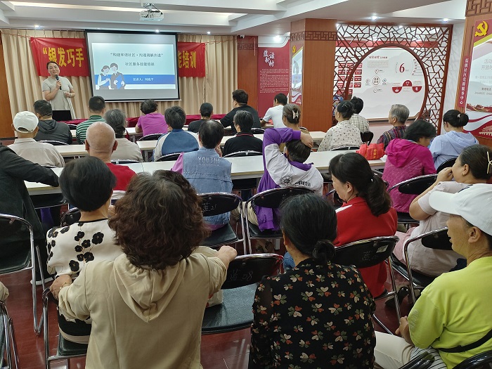 在随后的“银发巧手·服务暖心”社区服务技能培训环节,大光路街道残疾人之家主任刘晓平担任主讲。她结合自身丰富的基层工作经验,为“银发红袖标”志愿者们重点讲解了社区工作中的沟通技巧与矛盾调解方法,助力他们在日常巡逻、邻里协调中发挥更大作用。面向残疾人志愿服务队成员,刘主任则鼓励大家结合自身经历,分享了与不同类别残疾人沟通的独特方式与注意事项,并引导成员们思考如何将自身对生活的深刻理解转化为服务中的独特优势,实现从“被服务者”到“服务提供者”的积极转变。