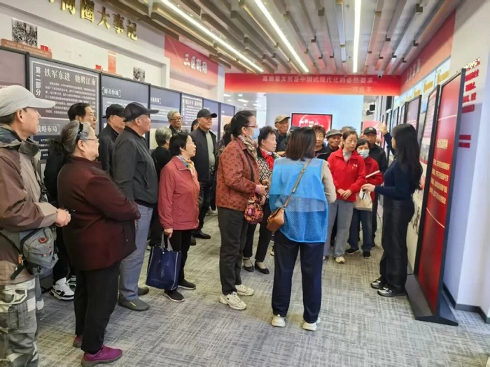为赓续红色血脉、厚植爱国情怀,10月20日下午,旭光里社区精心策划并组织居民代表开展"国防教育强根基 赓续荣光铸辉煌"主题实践活动。在新街口商圈党群服务中心的抗战精神专题展区,随着讲解员声情并茂的讲述,参观者仿佛穿越历史长河,亲身感受那段战火纷飞的峥嵘岁月。从中华儿女前赴后继的英勇抗争,到最终赢得民族解放的伟大胜利,展板上每一帧历史影像、每一件珍贵文物都激荡着在场每个人的心灵,让人不禁对革命先烈肃然起敬。