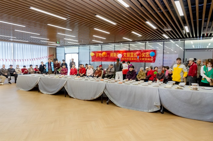 上午10时,随着主持人一声“开宴”,全体居民举杯共庆,百人同席的盛况正式开启。大家手持餐盘,穿梭于餐桌之间,一边品尝百家风味,一边交流烹饪心得。这道看似平凡的酸辣土豆丝刀工太绝了!这些南瓜馒头它们浑身金黄金黄的又软又甜,老人孩子都爱吃!赞叹声此起彼伏。居民张爷爷竖起大拇指:“这样的活动真好,平时忙很少有机会和邻居吃饭,今天不仅尝了手艺,还认识了好多新朋友!”