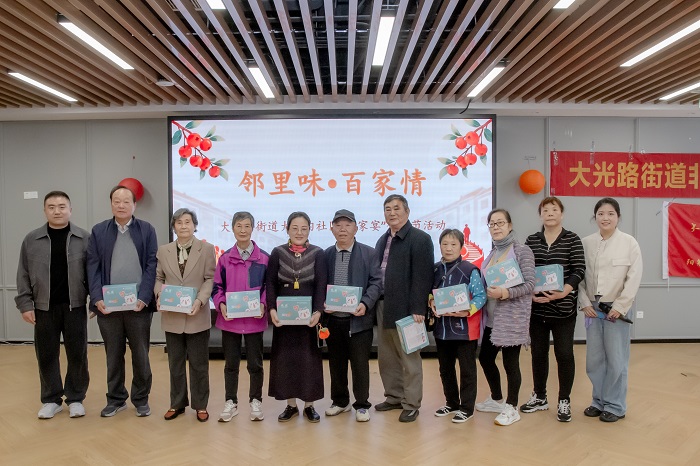 美食之余,活动穿插了丰富多彩的互动环节。社区文艺队就像一群活力四射的小精灵,欢欢喜喜地登场啦!他们一会儿带来悠扬动听的歌曲;一会儿又献上灵动优美的舞蹈,舞者们身姿轻盈,在舞台上肆意绽放光彩;更绝的是,多种乐器在他们手中仿佛被赋予了生命,轮番奏响,或激昂澎湃如万马奔腾,或婉转悠扬似黄莺啼鸣,让人沉浸在一场无与伦比的视听盛宴中!赢得阵阵掌声。猜谜语环节中,居民们争相抢答,笑声不断;有数10位居民朋友猜中灯谜谜底领取了精美礼品。最令人期待的“厨艺大比拼”将气氛推向高潮。工作人员为每道菜编号后,居民通过匿名投票评选出“最佳口味”“最佳品相”“最佳创意”三大奖项。最终,居民吴阿姨凭借“江米扣肉”斩获“最佳口味”,刘奶奶的“春鲜四宝”获封“最佳品相”,刘阿姨的“千层油糕”获封“最佳创意”奖。颁奖仪式上,获奖者们迈着自信而从容的步伐走上领奖台,他们脸上洋溢着自豪与喜悦;集体合影留念,定格下这份属于社区的荣耀与温暖。