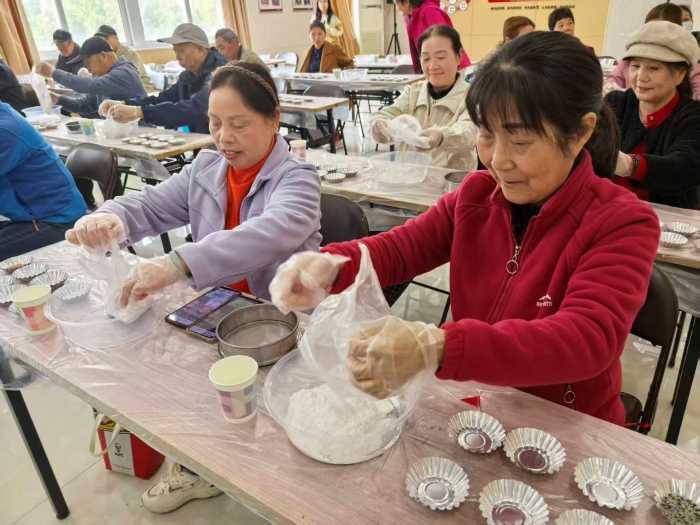 活动当天,会议室里洋溢着欢声笑语,充满了温馨祥和的气氛。社区工作人员提前准备好了糯米粉、红绿丝、筛子等制作重阳糕的原料和工具。在老师的耐心指导下,老人们兴致勃勃地学习着和面、筛粉、铺馅、点缀果干等步骤。大家互相交流、彼此帮助,一边回忆着往昔的重阳节习俗,一边分享着当下的幸福生活,现场其乐融融。不一会儿,一块块造型美观、香甜软糯的重阳糕便在大家的巧手中诞生,老人们看着自己的劳动成果,脸上露出了喜悦的笑容。