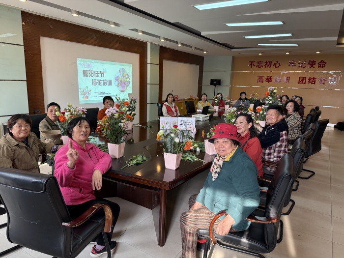 10月28日上午,社区举办的重阳节插花活动,让长者们欢聚,共同享受传统佳节。社区内的老年朋友们齐聚一堂,共同欢度这个属于他们的节日,感受着插花艺术带来的乐趣与温馨。在活动现场,专业的花艺老师首先为长者们讲解了插花艺术的基础知识,长者们纷纷动手实践,一边学习一边修剪花枝,并将精心挑选的花材一一插入花泥之中。长者们通过实践,亲手制作插花作品,体验成就感和愉悦。在温馨的氛围中,一束束构思巧妙、匠心独运的插花作品相继诞生,大家相互欣赏、交流心得,共同感受着插花艺术带来的愉悦与成就感。