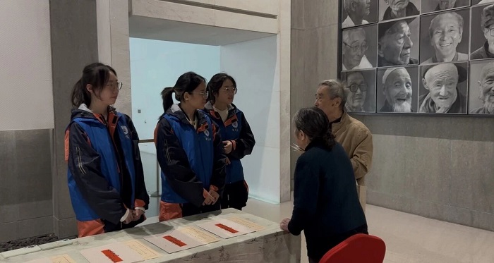 在金陵高职校旅游管理专业学生志愿者的带领下,长者们漫步于大报恩寺遗址公园,聆听历史的回响。在“重返长干里”展览厅里,许多老人驻足良久。那些熟悉的街景照片、充满年代感的老物件,勾起了大家共同的记忆。“这就是我们以前住的地方啊!”一位老人指着展览图激动地说。“阿姨,笑一笑,很好看!”“老姐妹靠近一点,对,就这样!”专业摄影师用镜头用心捕捉,一个个灿烂的笑容被瞬间定格。历史的厚重与邻里的温情在此刻交织,构成这个重阳节最动人的画面。