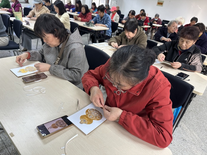 一个个缀满珍珠的宋锦福禄葫芦新鲜“出炉”,老人们举着作品凑在一起合影,脸上洋溢着满满的成就感。“既能学到手艺,又能讨个好彩头,比在家看电视有趣多了!”参与活动的居民们纷纷点赞。