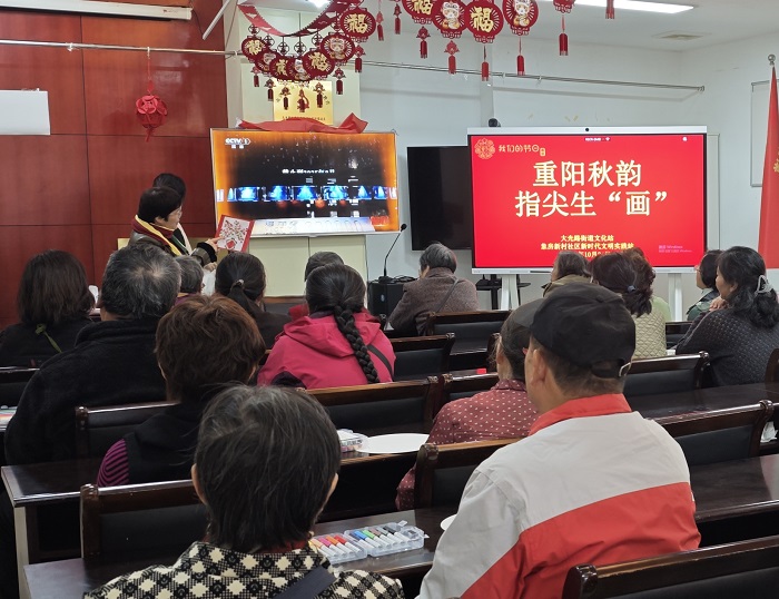 金秋送爽,丹桂飘香,又是一年重阳至。为弘扬中华民族尊老、敬老、爱老的传统美德,丰富辖区老年人精神文化生活,10月24日上午,象房新村社区新时代文明实践站,象房新村社区社教、妇联,大光路街道文化站联合组织开展 “重阳秋韵,指尖生‘画’”重阳节主题活动,20余名老年人欢聚一堂,用黏土制作茱萸画,共庆佳节。