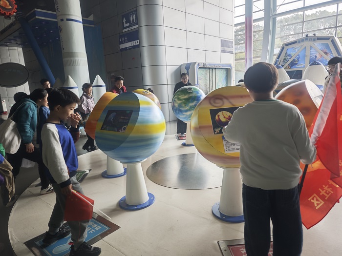 在“少儿科普体验区”,探索的乐趣更是扑面而来。孩子们围在人体器官模型旁,认真观察心脏、肺部等器官的结构与位置,互相分享自己的发现;在行星模型区域,大家对照讲解手册,仔细辨认水星、火星、木星等行星,并不时发出“原来木星这么大”的惊叹;而“不同行星体重测量仪”前更是排起了长队,孩子们轮流站上仪器,当看到自己在月球上的体重仅为地球的六分之一时,纷纷露出惊喜的表情,在欢声笑语中直观理解了天体引力的科学知识。