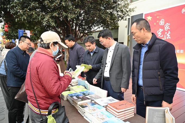 江苏省地方志工作办公室副主任、党组成员、机关党委书记刘立军,南京市地方志办公室党组成员、副主任汤林平,朝天宫街道组织委员李春鹏,评事街社区党委书记樊浣等向现场群众宣讲地情文化知识,并赠送《江苏好家训》《江苏掌故》《江苏影像》《江苏记录》《南京简史》《南京云锦口述技艺》等800多册史志书籍,将法治宣传与地方文化传播有机结合。
