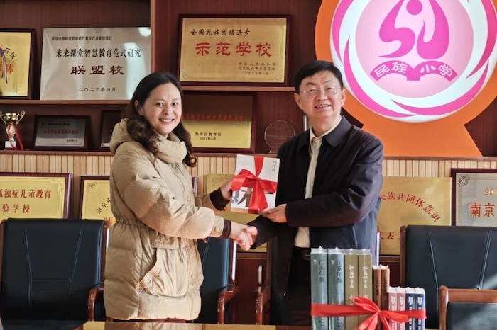 活动初始的赠书仪式中,江苏省地方志工作办公室副主任、党组成员、机关党委书记刘立军向朝天宫民族小学赠送了一批精心挑选的书籍,包括《这里是江苏》、《江苏好家训》、《江苏地方志》、《江苏年鉴》等共12部承载江苏历史文脉的地方志书与年鉴。刘立军在致辞中表示,这批书籍既有助于同学们了解脚下的土地与深厚的文化传统,也从历史与规范的视角深化对法治精神的理解。他鼓励同学们从地方文化中汲取养分,从小树立起法治信仰与文化自信,成为知法守法、热爱家乡的新时代少年。