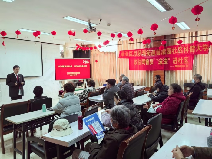 随后,秦淮区法院法官聚焦婚姻家庭、邻里纠纷、财产继承等民生热点,以真实案例拆解法律条文,用通俗语言回应“楼上漏水维权”“劳动合同签订” 等居民关切,引导大家树立“遇事找法、解决问题用法”的法治观念。