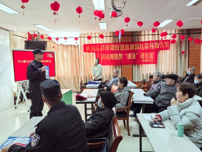 今年是全民普法40周年,在第十二个国家宪法日到来之际,为深入学习宣传习近平法治思想,大力弘扬宪法精神,12月16日上午,苜蓿园社区举办“学法懂法护权益,宪法相伴暖社区”主题宣传活动,邀请辖区民警、秦淮区法院法官,为居民送上实用法治盛宴,让宪法精神浸润社区。