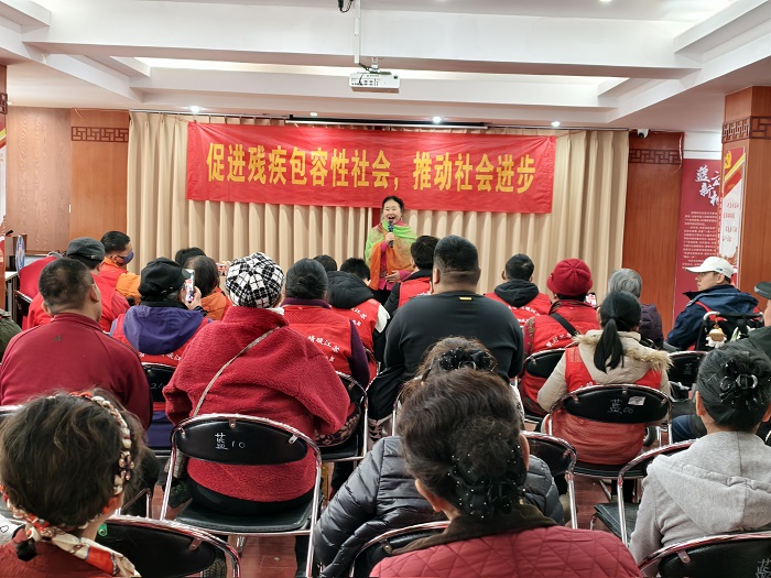 大光路街道蓝旗新村社区三楼内暖意融融、掌声阵阵。在第34个国际残疾人日到来之际,一场以“促进残疾包容性社会,推动社会进步”为主题的社区融合教育活动在此温情上演。本次活动由大光路街道残疾人之家与社区圆梦舞蹈队联合呈现,社区残障朋友、文体骨干及居民共同参与,通过艺术展演与协作游戏,打造了一堂生动深刻的社区共融教育课。
