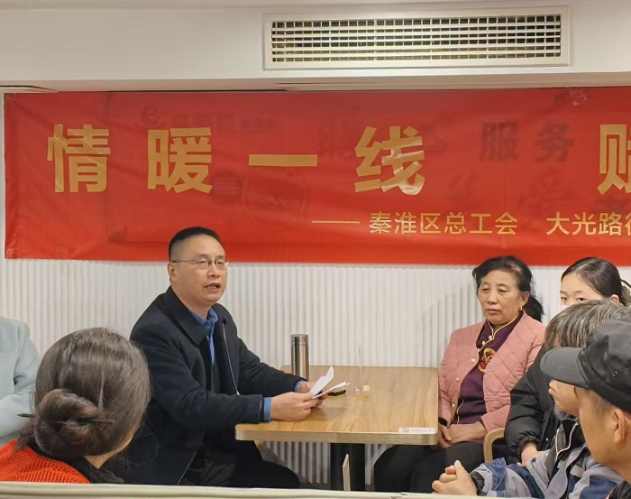 为切实保障新就业群体合法权益,将关怀与服务精准送达一线,12月19日下午,秦淮区总工会、大光路街道总工会联合尚书巷社区社教办,特邀法律援助律师在“宁工享”职工大食堂开展职工权益服务讲解活动,以专业法律服务为新就业体筑牢权益保障墙,让法治暖意浸润人心。