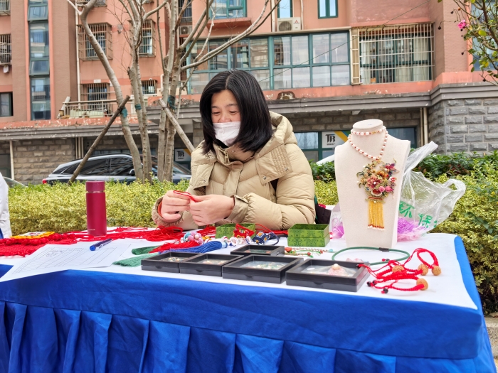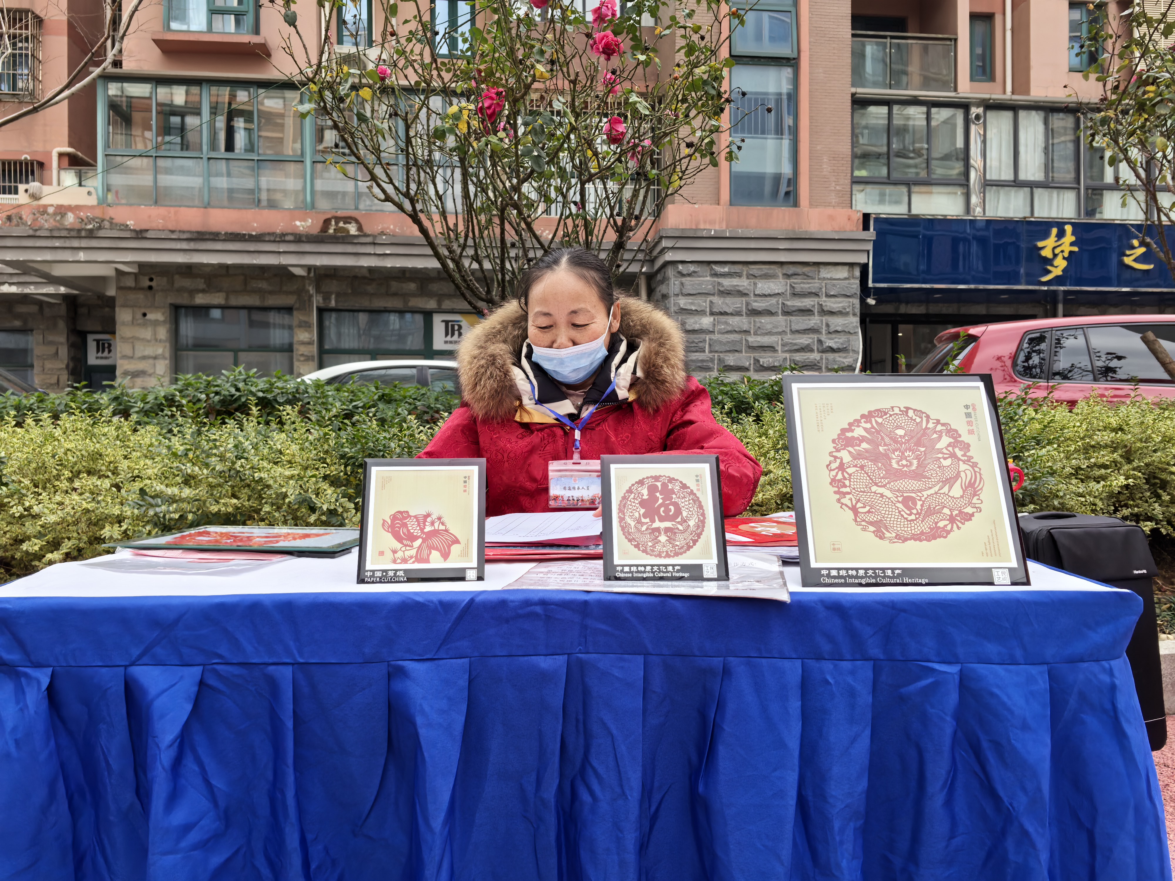 非遗体验互动区是居民们亲身体验民族文化的欢乐天地,活动特别邀请多位非遗传承人现场坐镇,带来非遗糖画、非遗面塑、非遗剪纸、非遗绳结四项特色体验。糖画传承人手执工具,以麦芽糖为料,快速勾勒出花鸟鱼虫等灵动造型;面塑艺人手把手指导居民揉捏彩泥,将普通面团塑造成栩栩如生的人物与摆件;剪纸摊位上,居民们跟着传承人折叠、裁剪,在指尖流转中诞生一幅幅精美的民俗纹样;穿绳体验区里,大家学习传统结艺技法,编织出寓意吉祥的民族特色绳结。在沉浸式实践中,居民们既锻炼了动手能力,更深入领略了非遗技艺的匠心与魅力,增进了对不同民族文化的认知,有效促进了各民族之间的交往交流交融。
