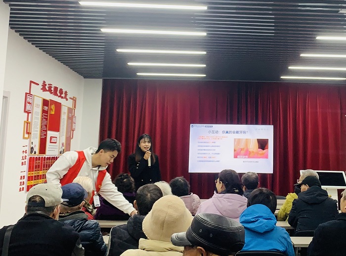 为提升辖区居民口腔健康意识,普及牙齿养护知识,12月23日下午,大阳沟社区新时代文明实践站联合社教,特别邀请专业牙科医生,为居民们带来了一场干货满满的牙齿养护知识讲座,吸引了众多居民踊跃参与。