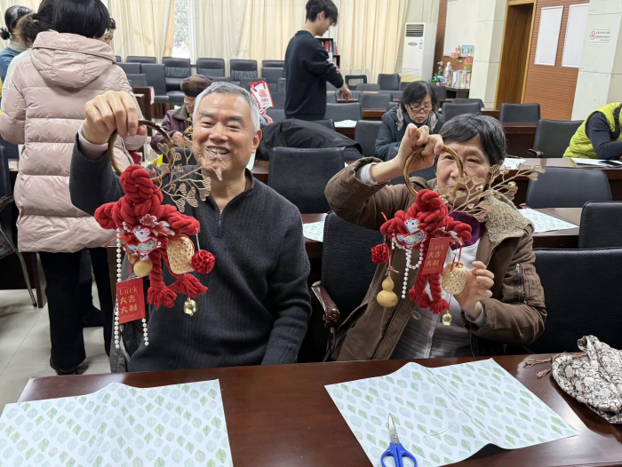 看着自己亲手编织的中国结,党员们脸上洋溢着满满的成就感。“平时很少有机会做手工,今天跟着老师学会了编中国结,既感受到了传统文化的魅力,又提前感受到了新年的氛围,特别有意义!” 老党员张阿姨拿着自己的作品爱不释手。