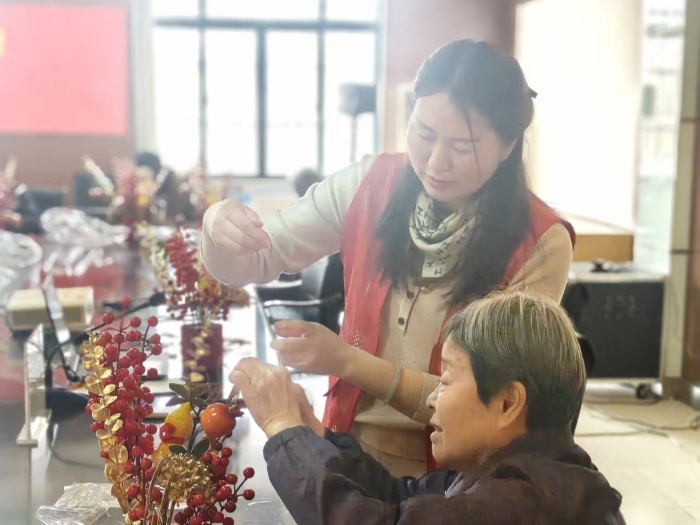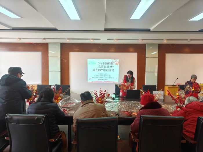 活动当天,社区活动室整齐摆放着各式各样的花材、装饰物以及特制的福字小挂件,等待着大家的巧手装扮。社区的工作人员首先向大家介绍了活动的意义,强调了在新时代背景下传承和发扬传统文化的重要性,并对社区志愿者们长期以来对社区工作的支持与贡献表示了衷心的感谢。