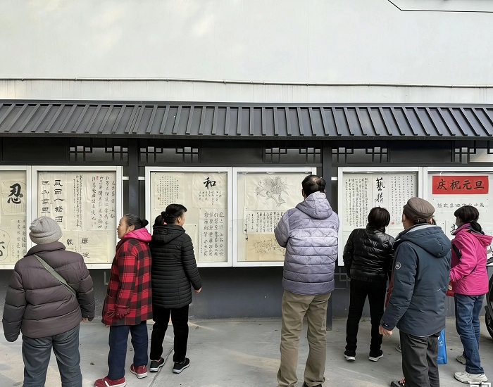 元旦佳节,1月1日,双桥新村社区内墨香阵阵,年味渐浓。为弘扬中华优秀传统文化,丰富居民精神文化生活,秦淮开放大学社区教学点双桥新村书法班“庆元旦·颂新风”主题作品展于元旦当天温情开展,为冬日社区增添了一抹典雅温暖的艺术色彩。