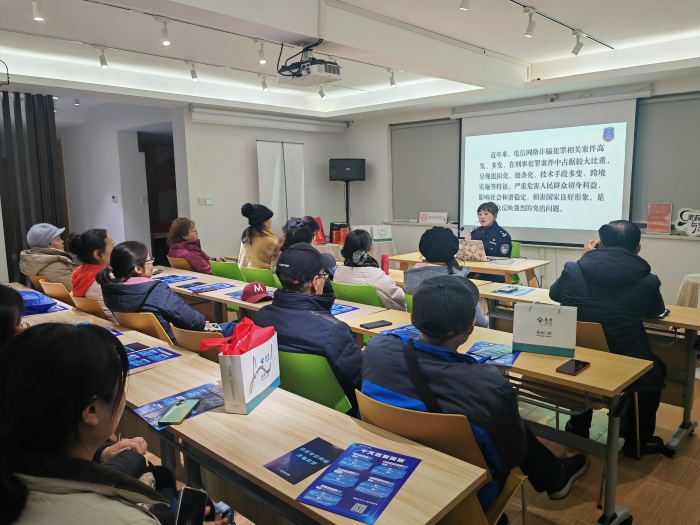 为进一步增强社区居民防范电信网络诈骗的意识,提升居民识别、应对诈骗的能力,1月8日下午,红悦社区邀请南京市公安局反诈支队民警马轩走进社区,为居民带来一场生动实用的反诈知识专题讲座。