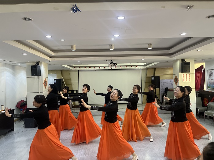 声乐小组以一首《当我们相聚的时刻》深情开场,歌声悠扬动人,传递出对社区大家庭的珍惜与热爱。舞蹈小组则表演了集体舞《灯火里的中国》,舞姿优美、情绪饱满,表达了对家国兴旺的诚挚祝福。随后,《梦里的你》《你是我放牧的那朵云》等独唱节目依次登场,情感真挚、旋律动人。小组内擅长乐器的成员也带来了自弹自唱《爱永在》,琴声与歌声相和,引来现场阵阵共鸣。舞蹈节目《美丽的心情》与《轻轻》相继亮相,一动一静,展现出社区文艺活动的多元风貌。