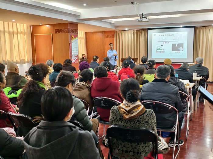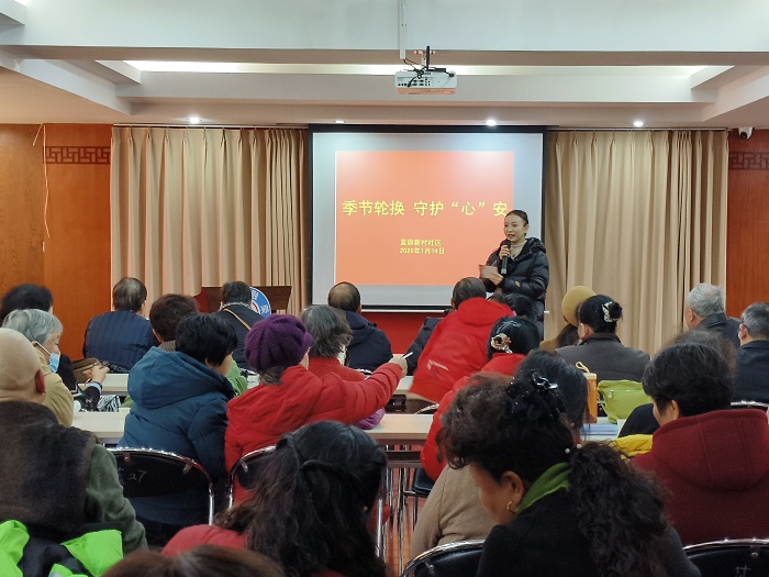 2026年1月14日,时值隆冬,为提升居民对心脑血管健康的科学防护意识,蓝旗新村社区联合南京市第一医院、南京钢铁集团江苏冶金机械有限公司、秦禄人家康养中心,于社区三楼活动室共同举办了主题为“季节轮换 守护‘心’安”的“医养四季讲堂”活动,吸引了40余位中老年居民积极参与。