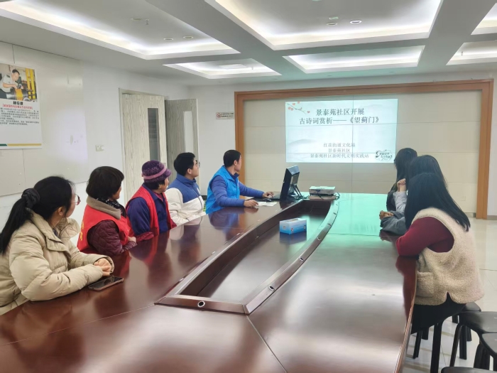 为丰富居民精神文化生活,弘扬中华优秀传统文化,1月15日上午,景泰苑社区在社区活动室举办了一场别开生面的古诗词赏析活动,带领居民共同走进唐代边塞诗的豪迈世界,深度品读祖咏的名篇《望蓟门》。