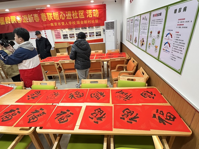 岁末暖阳照,墨香迎新春。2026年1月24日上午,瑞金新村社区一楼活动室暖意融融,一场延续九年的文化之约如期而至——瑞金新村社区新时代文明实践站再度携手南京聋人学校,开展“墨韵飘香迎新春 春联暖心进社区”写春联活动,用笔墨传递祝福,以文化凝聚人心。
