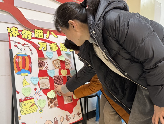 随后,充满趣味的黏土腊八粥手工环节拉开帷幕。工作人员为大家准备了手工材料,向居民们演示了黏土腊八粥的制作方法,教大家用不同颜色的黏土捏制大米、红豆、绿豆、红枣、莲子等食材。居民们一起发挥想象力和创造力,指尖翻飞间,一个个形态逼真、色彩鲜艳的黏土食材逐渐成型,再小心翼翼地放入“碗”中,一碗碗独具特色的黏土腊八粥就此完成。手工制作结束后,社区还为大家准备了精美的便签纸,邀请居民们写下新春寄语。大家纷纷提笔,将对新一年的美好期盼、对家人的祝福、对社区的祝愿一一写在纸上,贴在展板上,用文字传递心意,定格美好瞬间。