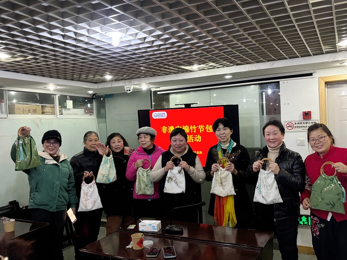 当一块块宋锦面料在居民手中蜕变成为兼具实用性与观赏性的竹节包,每个人的脸上都洋溢着满满的成就感。大家拎着亲手制作的包包相互展示,分享创作过程中的小趣事,纷纷感叹非遗工艺的神奇与中式美学的韵味。