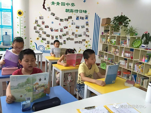 上怡新村社区联合社会组织青葵园积极开展丰富多彩的假期活动,充实孩子们的暑期生活,给孩子们营造一个快乐,充实的暑假!青葵园的一天从8:20的读书声开始,9::0早读完毕,孩子们开始写暑假作业,老师给每个孩子制作了一张暑假作业记录表,每天需要完成的作业一目了然,不但方便老师们检查作业,孩子们也可以做到自律,自主。基础好的孩子们很快就会完成一天所有的作业任务,可以在阅读区域看课外书,做做手工。愉快的下午从孩子们练习书法开始。有练毛笔字的,有练钢笔字的,还有一年级的小朋友在描红。书法练习为时半个小时,孩子们都很认真。接下来兴趣课堂开始啦,国学讲堂、绘画课、国际音标、趣味数学、象棋课、走近科学,手工制作……在孩子们完成当日暑假作业的前提下,可以根据自己的兴趣爱好自由参加。在青葵园,孩子们不仅可以按时完成暑假作业,养成良好的学习习惯,还可以在丰富课余生活、培养兴趣爱好的同时养成良好的生活习惯。