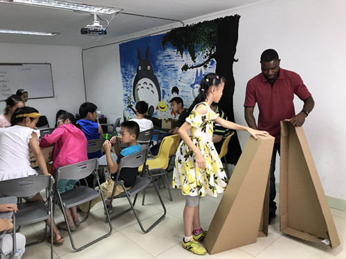 7月25日、27日及29日,上怡新村社区组织青少年在4名外教老师和乐名星团队老师带领下,进行了美国馆好莱坞建筑模型的制作、英国馆伦敦桥建筑模型的制作活动。之后外教老师又对自己的国家,美食进行了详细介绍,和小朋友们进行了游行互动,唱英文歌,书写英文明信片等,最后在7月29日下午进行了唐人街美食品尝活动。