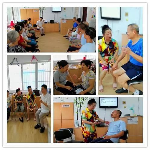 8月15日,梅清苑社区老年精神关爱主题馆内,一群来自不同行业、年龄相近、活力十足的叔叔阿姨们齐聚一堂,参加”让生命呵护生命“义工培训,开始享受一场“灵魂的盛宴”。陈老师播放了一段感人至深的关于空巢老人的视频,引发了志愿者们的共鸣。陈老师顺势让大家一起分组模拟服务场景,两个志愿者一组,一个扮演老人一个扮演志愿者,叔叔阿姨们有的笑场不断,有的表示没遇到过这样的情况,手足无措,有的紧张地老喝水,最后大家纷纷表示要多学习才能更好地服务老人。老师适时地开始引导,并教授了大家许多新的知识,在欢快愉悦的课程中大家收获满满,最后,在志愿者们的彼此拥抱中,互相为对方戴上了象征义工的手环,勾手约定,生命呵护生命,让爱传出去。