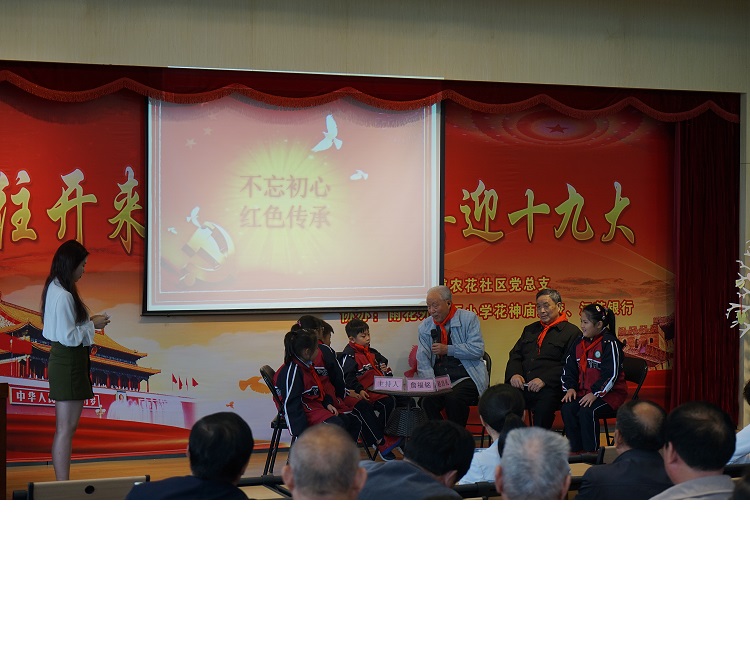 10月17日下午,雨花街道农花社区党总支联合星风采社区服务中心、雨花外国语小学花神庙分校和江苏银行开展了“继往开来,红色传承,喜迎十九大”的主题活动。