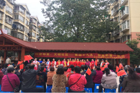 10月19日下午,景明佳园社区社会组织联合党支部的党员文艺骨干和社区群众在景明佳园二期广场开展了一场全程由社区党员群众自编自导自演的文艺演出,以此庆祝党的十九大胜利召开。活动在舞蹈《爱我中华》中拉开了序幕,整个活动现场非常热闹,诗歌朗诵《党啊 我的母亲》、黄梅戏《看长江》等一个个节目表达了党员群众们对十九大胜利召开满怀激动的喜悦之情。大合唱《五星红旗迎风飘扬》,现场的观众齐声合唱,更是将活动推向了高潮。大家通过此次活动祝福祖国、歌颂祖国、感恩祖国!同时营造良好的生活氛围,通过鼓励党员群众开展自导自演的活动,让大家逐渐走出陌生,相聚在一起,使小区变得更加文明和谐。
