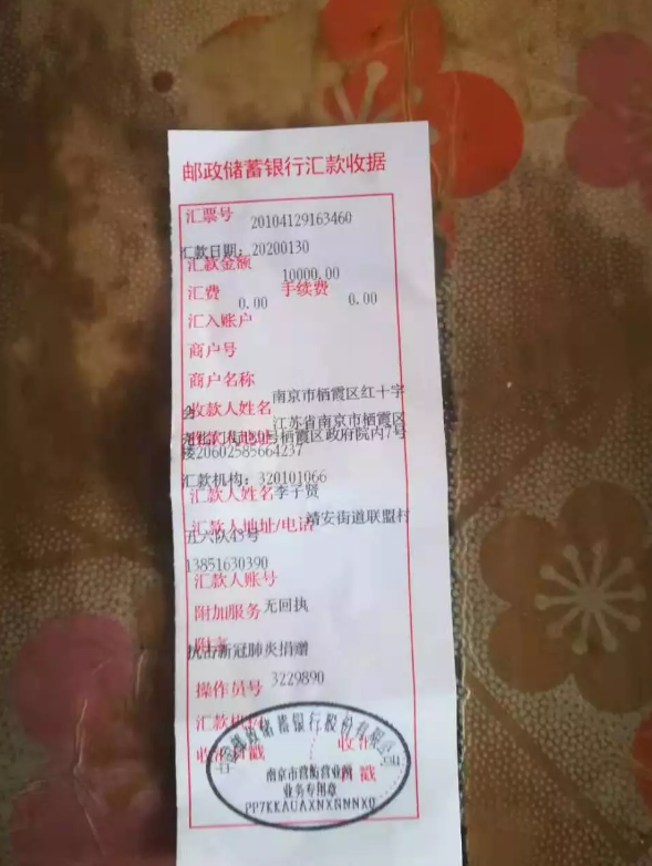 1月29日,联盟村刘书记接到李子贤老师的来电,李老师直言自己想助力疫情防控,将自己的1万元汇入了栖霞区红十字会专项账户;2月20日,李老师又为靖安佳园社区和社区教育中心送来慰问物资,支持在岗的一线防疫工作人员。