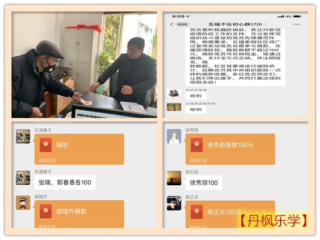捐款以“尊重意愿,自觉自愿,量力而行”为原则进行。3月1日一早,社区党委在党员不忘初心微信群内发布通知后,群内党员积极响应,短短几分钟捐款就达数千元!