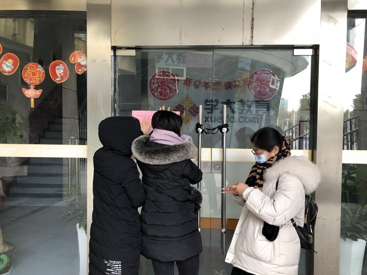 教育中心对辖区内校外培训机构进行地毯式摸排,做好防控知识宣传,要求各培训机构做好疫情防控措施,严禁违规提前开课开训,工作人员每天持续、深入地对辖区每一家校外培训机构进行现场巡查督导,张贴疫情防控工作公告,确保各校外培训机构严格执行全面停课停训要求。