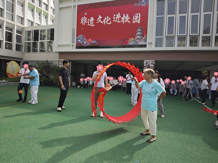 活动现场,专业的表演团队带着他们精湛的技艺与热情走进了育智学校。在铿锵有力的锣鼓声中,金色的“长龙”在表演人员的舞动下时而腾空飞跃,时而蜿蜒盘旋,引得孩子们目不转睛,发出阵阵惊叹与热烈的掌声。